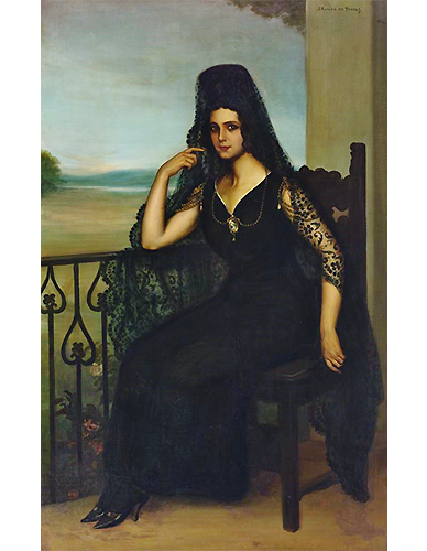 The reason this thirst-quencher ended on the block in the Catalonian capital is because of a previous owner. It is inscribed on the front with the name of Raquel Meller, who lived in Barcelona from 1939 until her death in 1962. Who she? I hear you say. Once Spain’s biggest superstar, that’s all – a music-hall artiste and movie actress famed on both sides of the Atlantic. Raquel (real name Francisca Marqués López) graced the cover of TIME magazine in 1926, and was painted by Sorolla and (twice) by Julio Romero de Torres, whose Semana Santa (1910), showing Raquel in the traditional costume of Holy Week, sold at Setdart for €223,000 in 2007, and is now in the Romero de Torres Museum in his native Cordoba. In 1913 he recorded Raquel in a pose à la Goya alongside writer and critic Enrique Gómez Carrillo (whom she later briefly married) in the traditional costume of Eve. The work, coyly titled Venus de la Poesía, is now in the Museo de Bellas Artes in Bilbao.