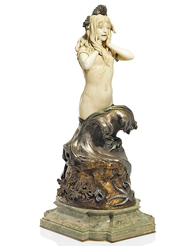 Winans had creativity in his blood: he could trace his ancestry back to the 17th century Flemish artist Jan Wynants. His prowess as a sculptor had long been apparent – and retains saleroom appeal. His bronze Sioux Indian Chief on Horseback culled $30,000 at Hindman Auctions (Chicago) in 1994, while his ivory and bronze Mermaid, exhibited at the Royal Academy in 1909, fetched £62,500 at Christie’s London in 2016.