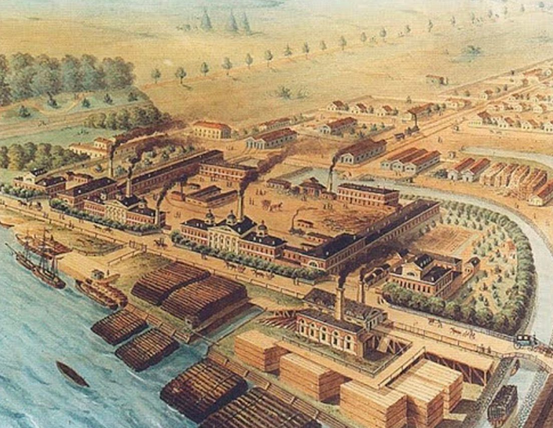 The mansion was home to the families of William Winans (Walter’s father) and his elder brother Thomas. A matching house, 350 yards away on the other side of Alexandrovsky Foundry, was occupied by the famileis of their associates Joseph Harrison and Andrew Eastwick. Foundry and houses still stand.