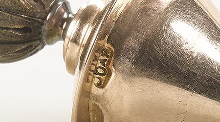 Fabergé was known for turning even the most mundane objects into refined works of art, and gum pots were no exception. These desk accessories were produced in a variety of shapes and forms: carved as fruits from semi-precious stones, or, like this one, cast in gold and silver and decorated with guilloché enamel.
