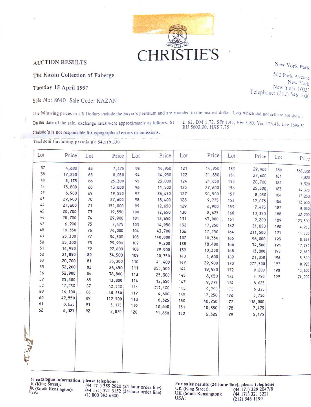 Sale: The Kazan Collection, Christie’s New York 15 April 1997, lot 116, price realised $211,500