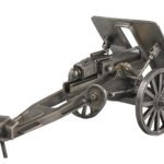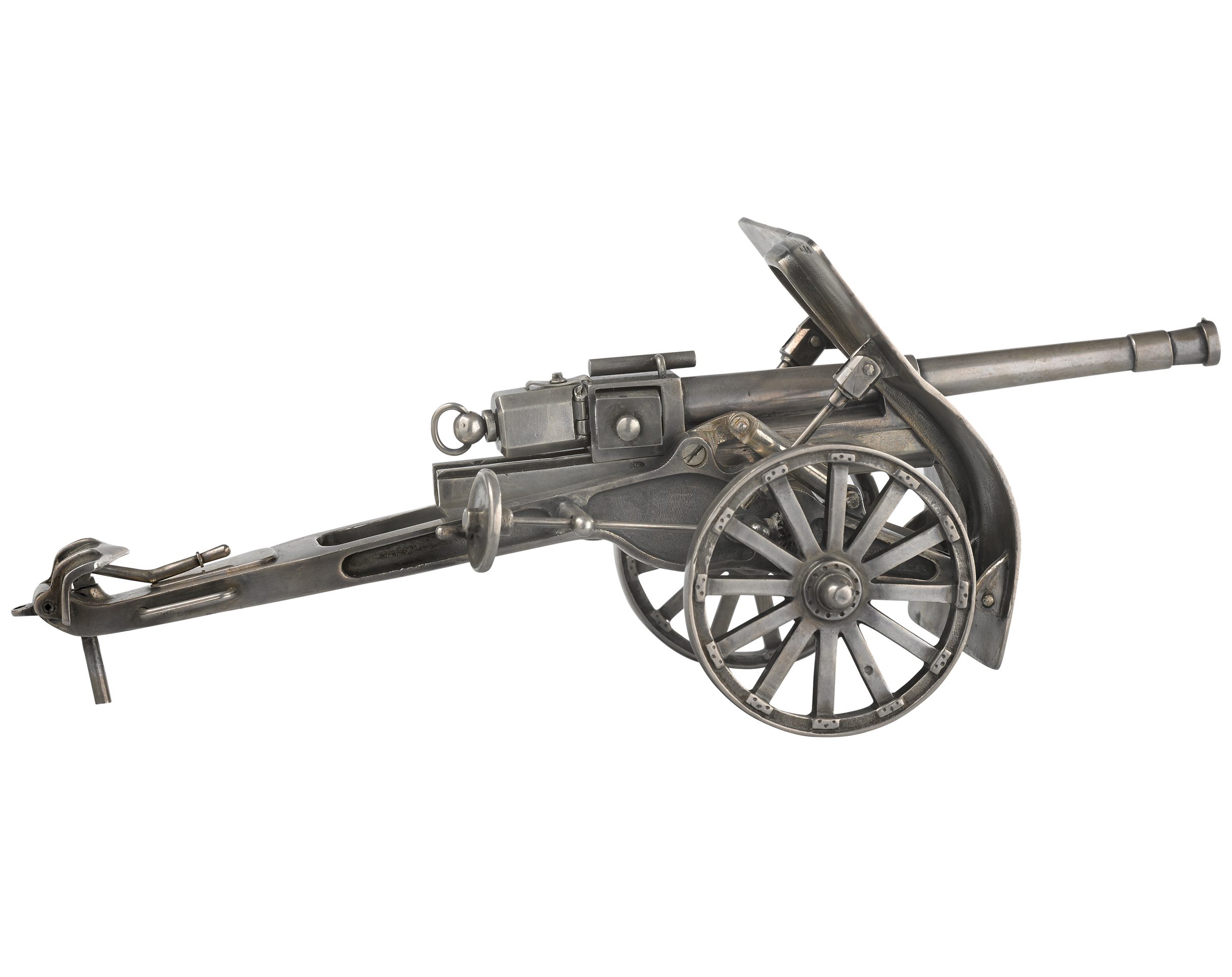 A miniature silver model of a First World War field cannon with a spring-loaded barrel and a loading breach action. Several meticulously fashioned toys of this nature were made for the Tsarevich Alexei. For a Volga steamer presented to the Tsarevich in 1913 see Ch. Forbes & R. Tromeur-Brenner, Fabergé. The Forbes Collection, New York, 1999, pp. 250-1.