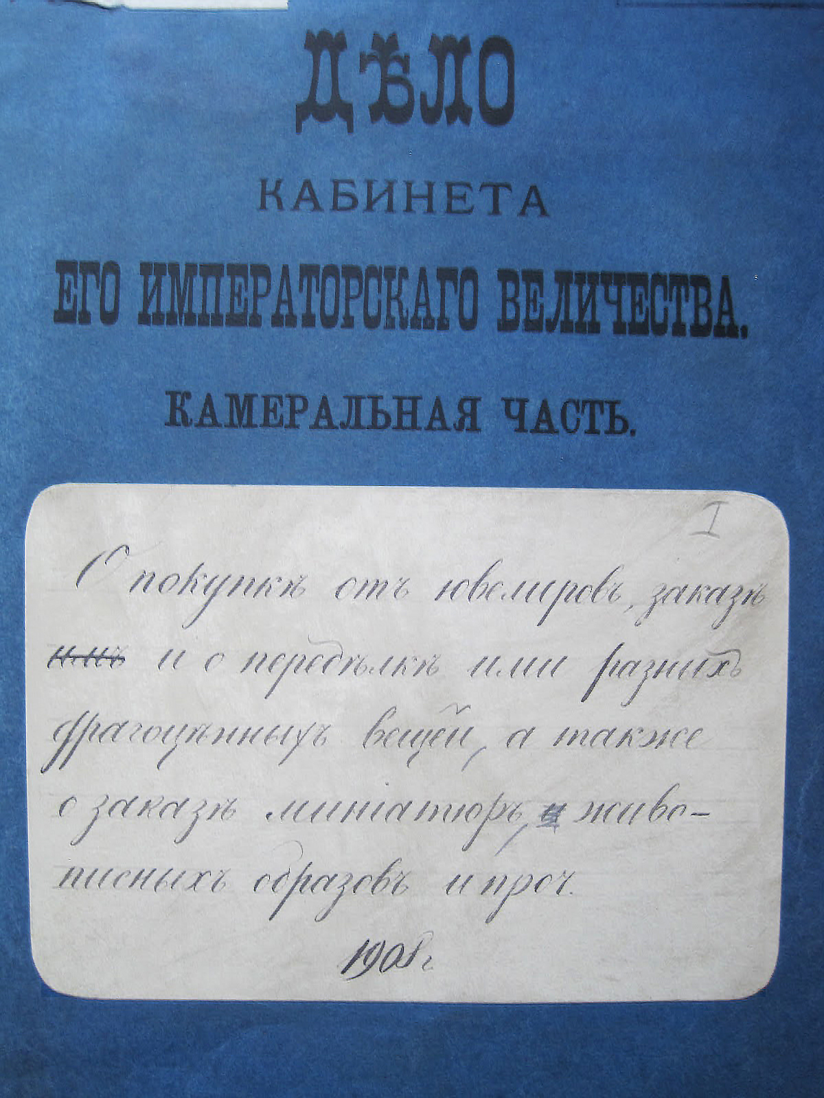 - Листы из дела 468-8-953 “О закупке от ювелиров драгоценных вещей в Кабинет” за 1908 г.