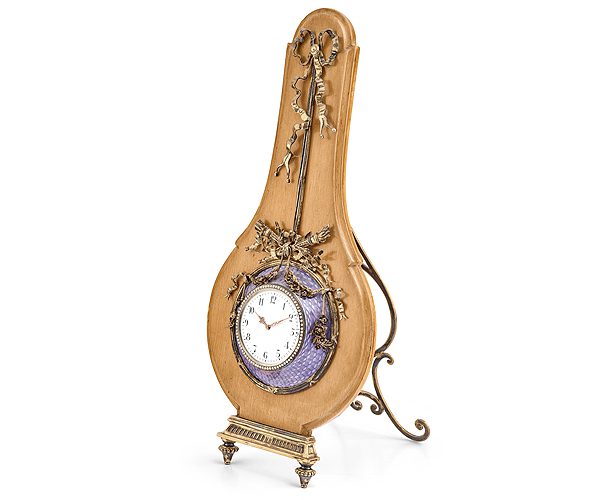 - Lot 56 Enamel, seed pearl and sycamore desk-clock