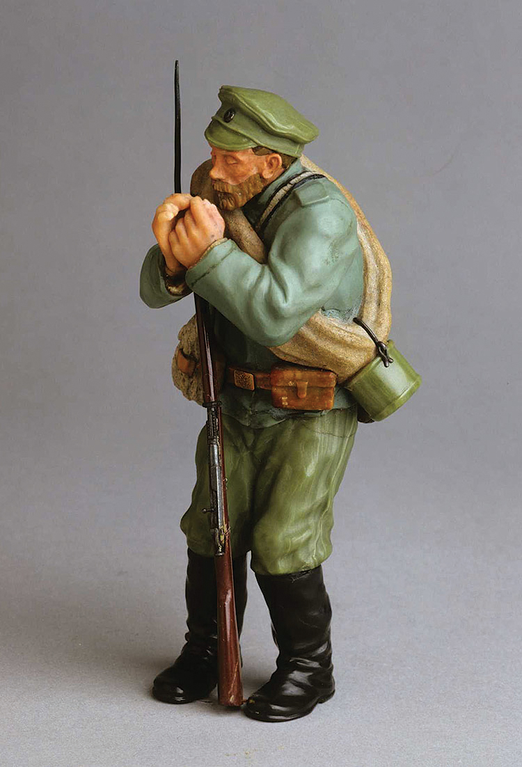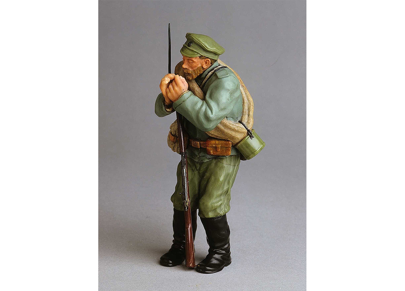 Тем не менее, пока в лабораториях Эрмитажа делают свою работу, я продолжу свою. Как верно отметил Михаил Борисович, “есть три способа ответов на вопросы [о подлинности] — документы, технологии и искусствоведческий анализ в контексте”. Применив эту формулу, я попробую проанализировать еще один экспонат — многократно упомянутую фигурку солдата.