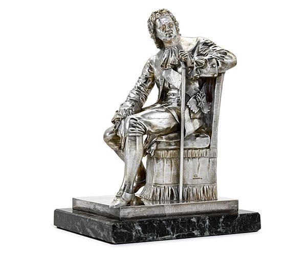A 34cm silver statuette of a seated Peter the Great brought £31,200, or £26,000 hammer (Lot 225, est. £20,000-30,000). In 1996 the same statuette appeared on the cover of a Christie’s catalogue; it sold for £11,000 hammer (worth £21,600 today, according to the Bank of England’s Inflation Calculator). Silver statuettes of Peter the Great – or any Russian monarch – are rare, and I thought the price pretty modest… especially as it would have made a great Christmas present for that latterday incarnation of Russian Greatness, Vladimir Putin. The statuette was made in 1872 by the Sokolov factory in St Petersburg, after a bronze original by Alexander Opekushin (itself inspired by Nikolai Ge’s 1871 painting Peter the Great Interrogating Tsarevich Alexei). A slightly smaller (29.5cm) but otherwise identical bronze statuette, from the estate of Dr Horst Muno, appeared at Von Zengen Kunstauktionen in Bonn in February 2018. It was catalogued (rather casually) as ‘Russian, c.1880-90.’