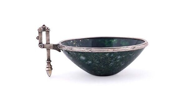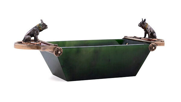 According to liveauctioneers.com, the Ahlers & Ogletree Auction Gallery in Atlanta (Georgia) are a ‘top-rated outfit.’ I’d like to think so, but they could be risking a down-grade on 15 January 2026 – when they’re set to offer two shoddy items of puported Fabergé: a silver-rimmed ‘moss agate charka’ (Lot 546) and a ‘gold-mounted nephrite dish’ ascribed to Mikhail Perkhin (Lot 547), with dog figurines at either end (gold standard 56). They’re both fakes: each piece is so ugly and clumsy that further comment is superfluous. It’s a shame that Ahlers & Ogletree didn’t bother to seek reliable opinion from experts in the field instead of barging into territory that is clearly not their shtick.